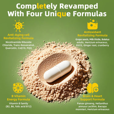 - 20-in-1 NAD Advanced Supplement: 20 ingredients upgraded into four major formulas, anti-aging cell regeneration formula, antioxidant skin revitalizing formula, vitamin B energy formula, Brain & Heart Support Formula, designed to support your health, aging and overall health.