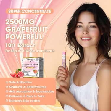 - Delicious Grapefruit Flavor Convenient & Tasty: Enjoy the refreshing grapefruit flavor in a convenient 0.85 fl oz bottle. Each pack contains 10 bottles, perfect for on-the-go use. Incorporate our delicious and easy-to-swallow liquid collagen into your daily routine effortlessly, ensuring you never miss a dose of your beauty and health regimen.