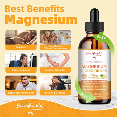 GreenPeople 17-in-1 Triple Magnesium Complex combines magnesium glycinate, citrate, and herbal extracts to support relaxation, focus, and daily balance. With a refreshing pineapple flavor, this vegan, sugar-free liquid supplement is designed for adults and kids.Fast Absorption for Better Results
