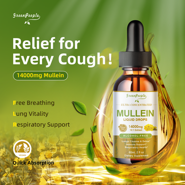 Breathe better with GreenPeople's 13-in-1 Mullein Leaf Drops. Each 2ml serving delivers the power of 420,000mg from a 10:1 extract, including Mullein, Elderberry, Astragalus, and Thyme. Supports clear breathing, immune health, and fast recovery—ideal for smokers, wellness seekers, and allergy season. Sugar-free, alcohol-free, and fast-absorbing.