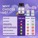 Magnesium Glycinate & Ashwagandha Supplement Capsules - Sugar-Free Magnesium Capsules with L-Theanine 150mg/GABA 88mg/Calcium 68mg 120 CT