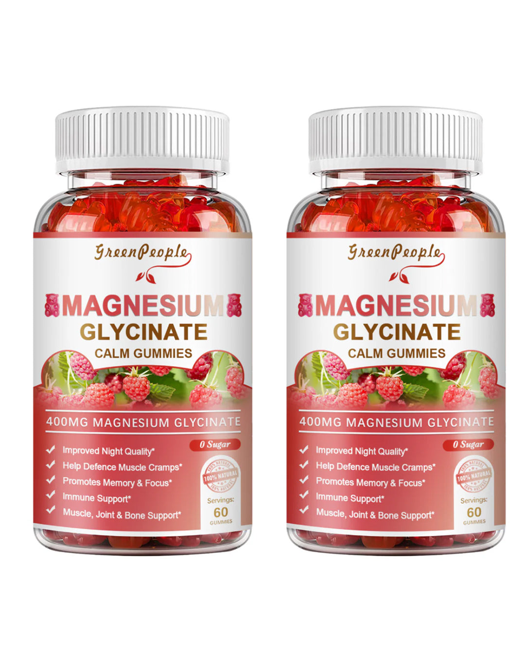 (2 Pack)Magnesium Glycinate Gummies 400mg,with Magnesium Malate,CoQ10 for Calm Mood & Sleep,60 Count