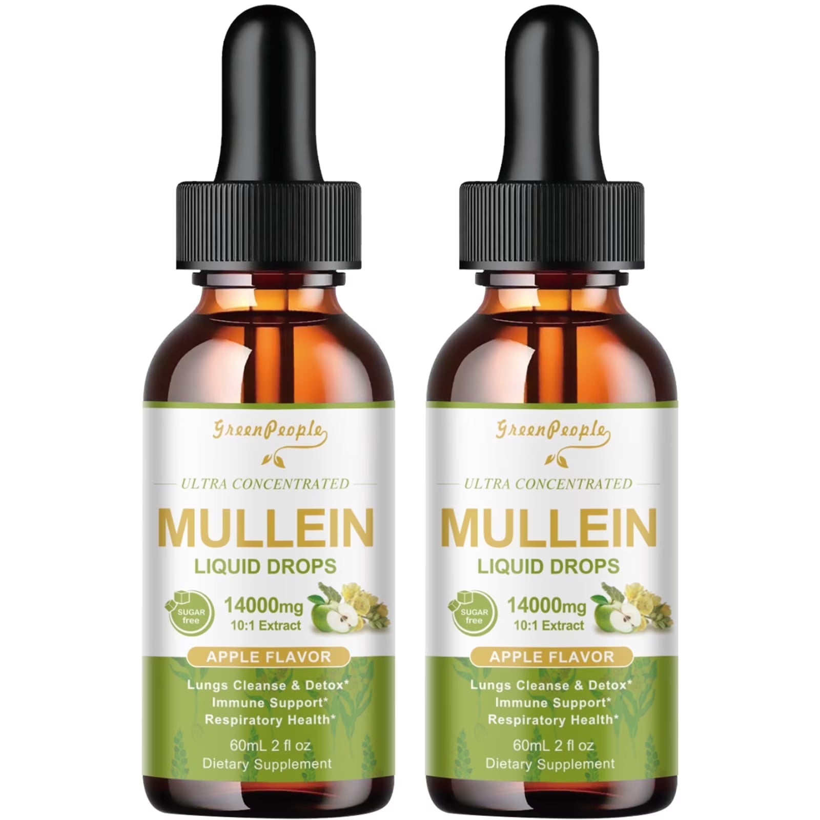( 2 Pack) Mullein Drops for Lungs - Vegan mullein leaf extract Highly Absorption - Lung Cleanse & Immune Support, Apple Flavor, 4 Fl oz