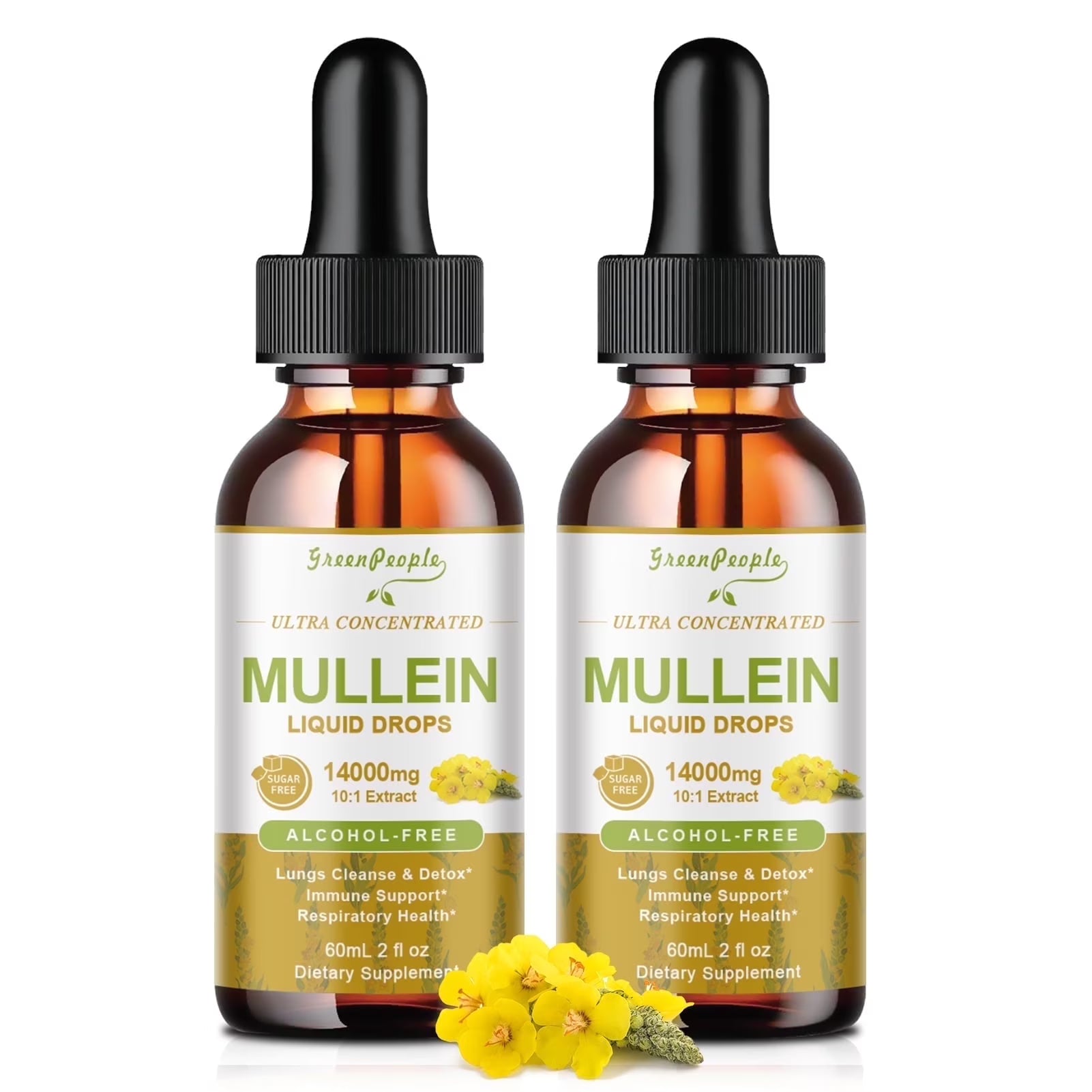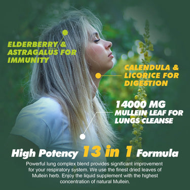 (2 Pack)Mullein Drops for Lungs - 1400MG Mullein Leaf Extract for Lungs Cleanse Support - Respiratory Supplement - 2FL Oz