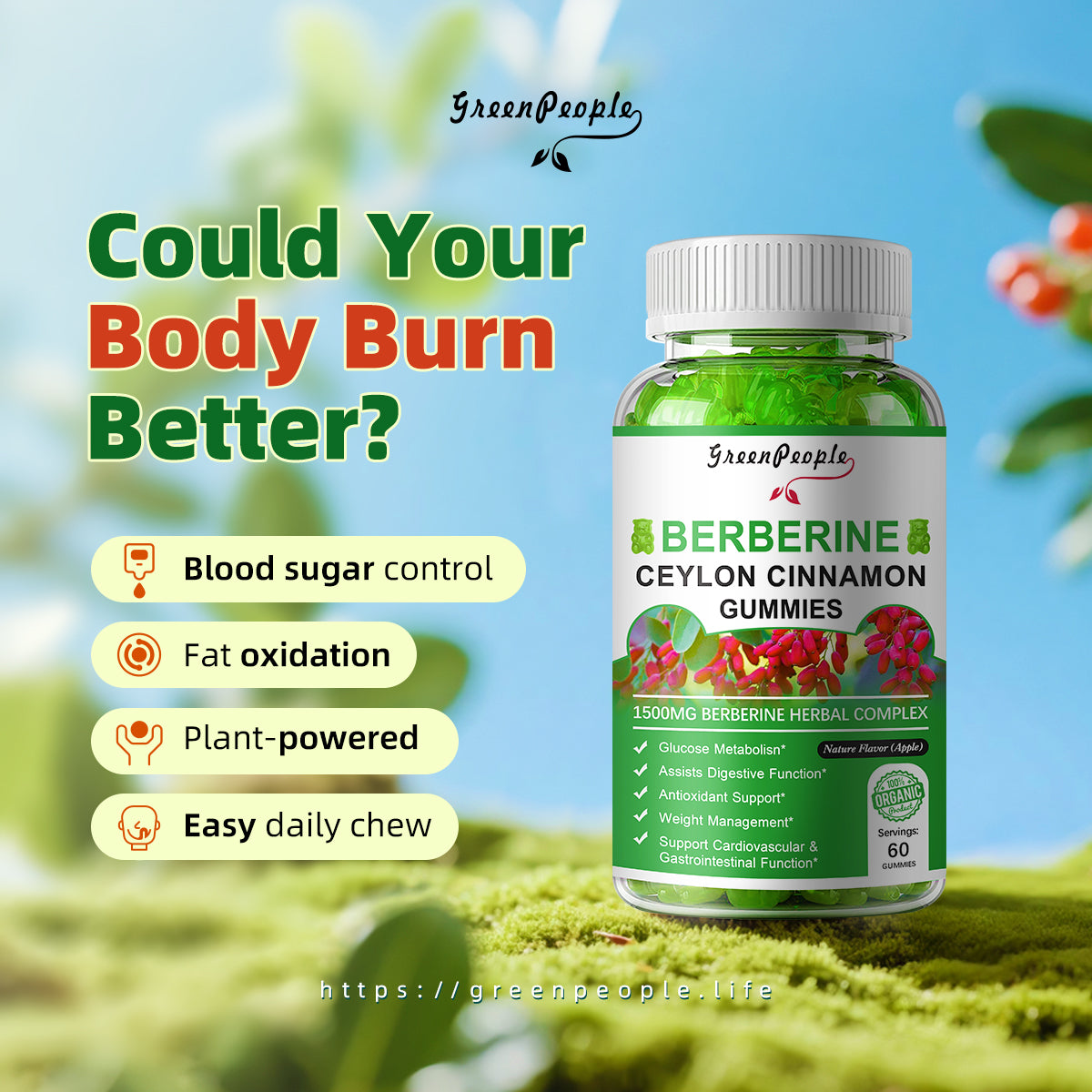 (2Pack) Berberine Gummies 1500mg with Ceylon Cinnamon Sugar Free 120 CT Apple Flavor