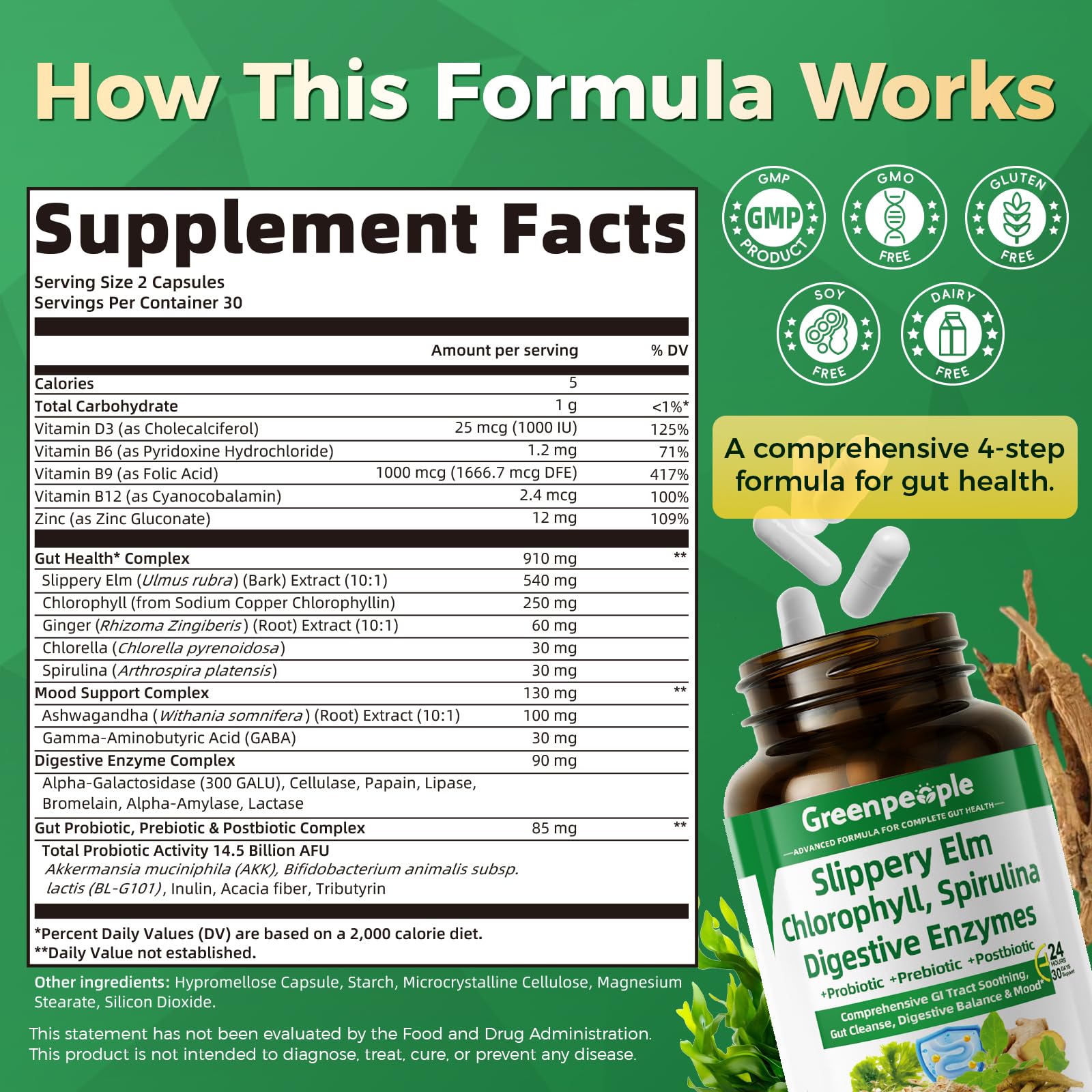 GREENPEOPLE 4-in-1 Complete Gut-Brain Restore | AKK Probiotics + Postbiotics + Digestive Enzymes (120 Capsules - 2 Month Supply)