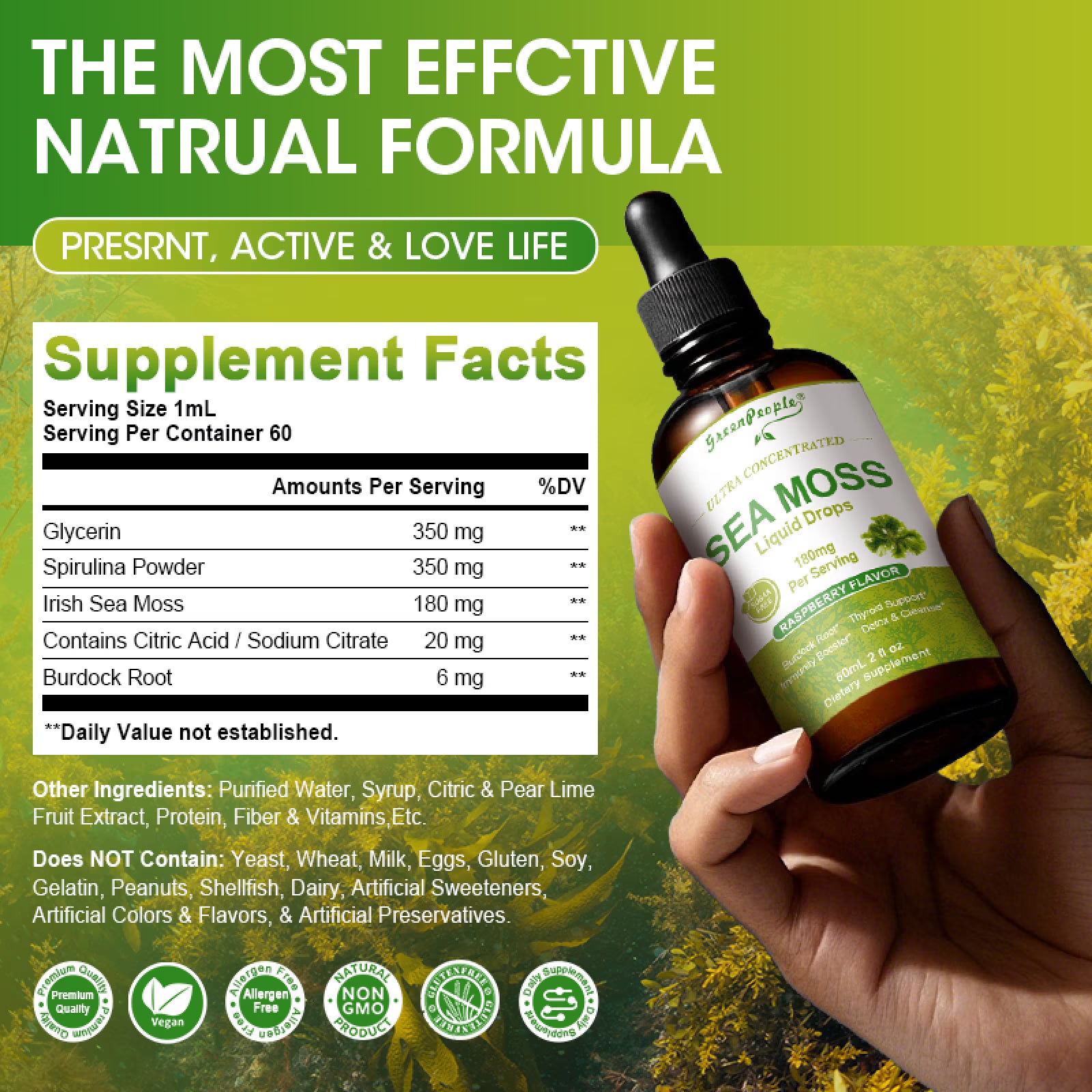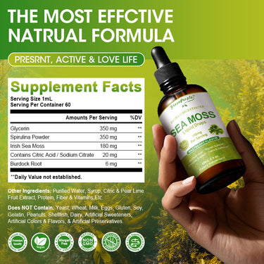 Irish Sea Moss Liquid Drops - 180mg per Serving - with Burdock Root & Spirulina (2 fl oz)