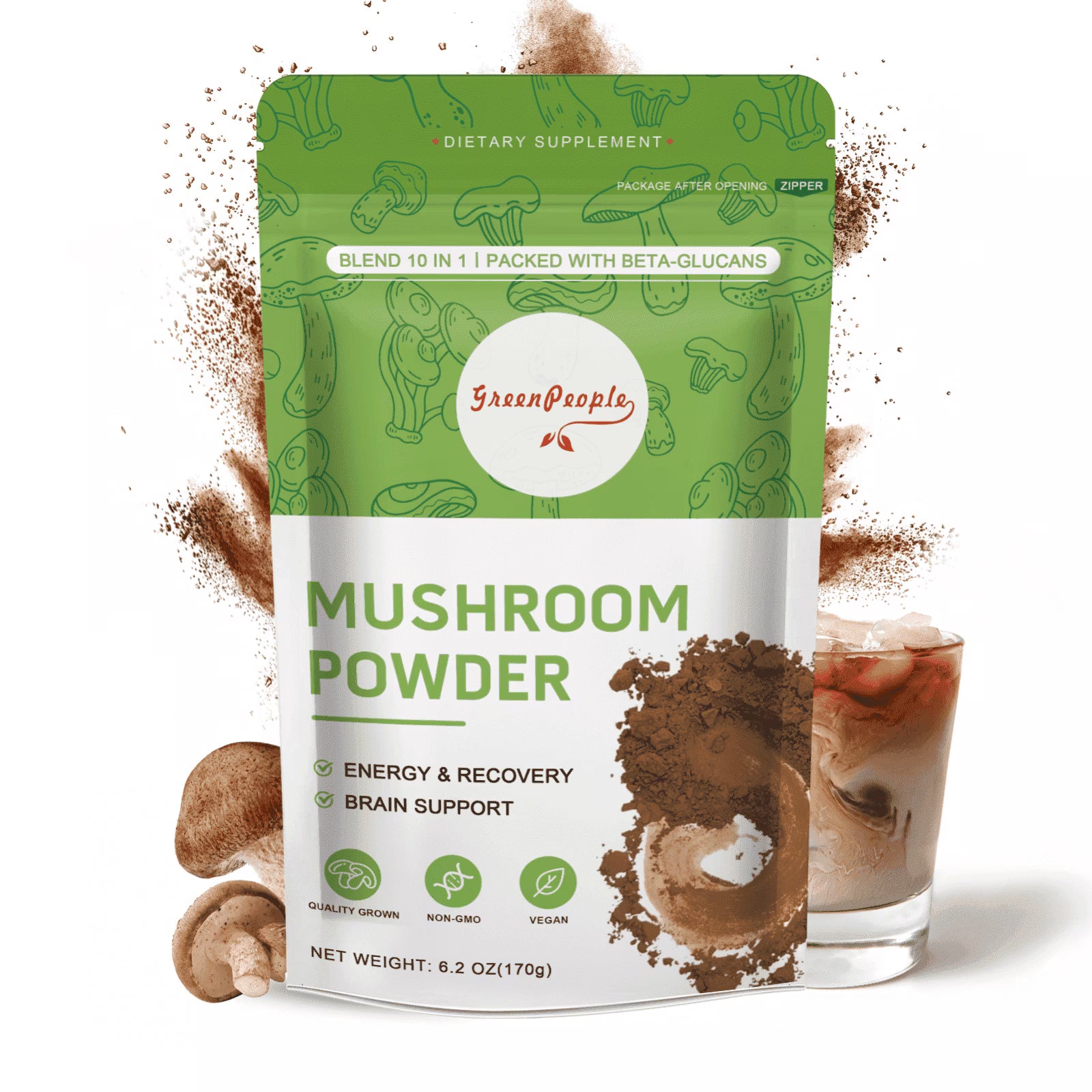 Mushroom Coffee- 10 Mushroom Blend Plus Cordycepsour Superfood Powder- 6.2oz (60 Servings) by Greenpeople