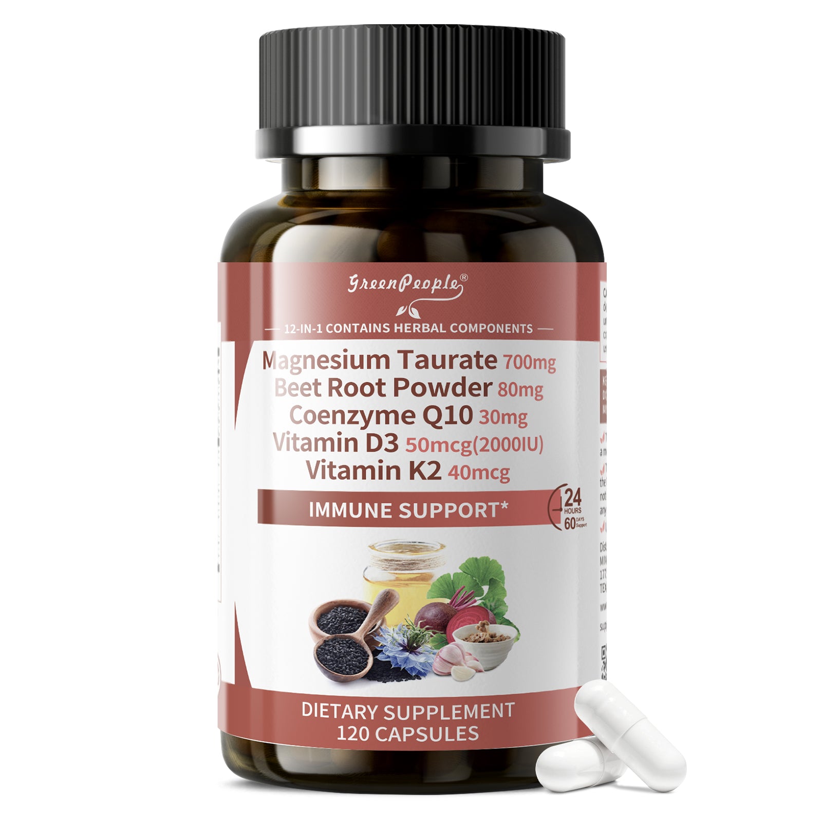 Magnesium Taurate Capsules, 12-in-1 Complex - Cardiovascular Health, Pressure Support, Immune Support, Absorption Magnesium Supplement for Women and Men,120 Capsules