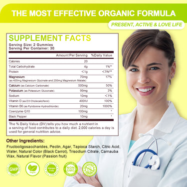 Our Magnesium Glycinate gummies offer a potent combination of magnesium, potassium, and wholesome ingredients to promote relaxation, improve sleep quality, and support overall well-being. With magnesium glycinate and magnesium malate, along with vitamins D, B6, and other essential nutrients, these sugar-free gummies are expertly formulated to provide a calming effect on the body and mind, reduce muscle cramps, and enhance cognitive health. The delicious passion fruit flavor makes them a hit with the whole family, and the addition of Coenzyme Q10 and Black Pepper Extract ensures digestive support. These gummies are a delightful and convenient way to incorporate essential nutrients into your daily routine.