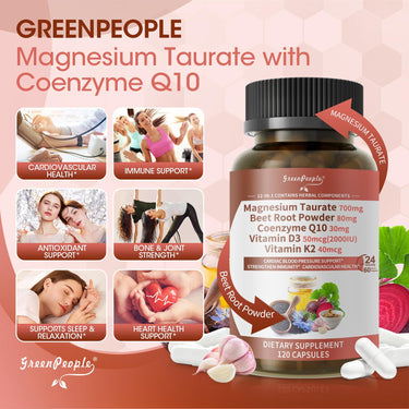 💓 12-in-1 Advanced Formula for Heart Health – Combines highly bioavailable Magnesium Taurate with CoQ10, Beet Root, Garlic Extract & Resveratrol to support cardiovascular function, healthy blood pressure & circulation.