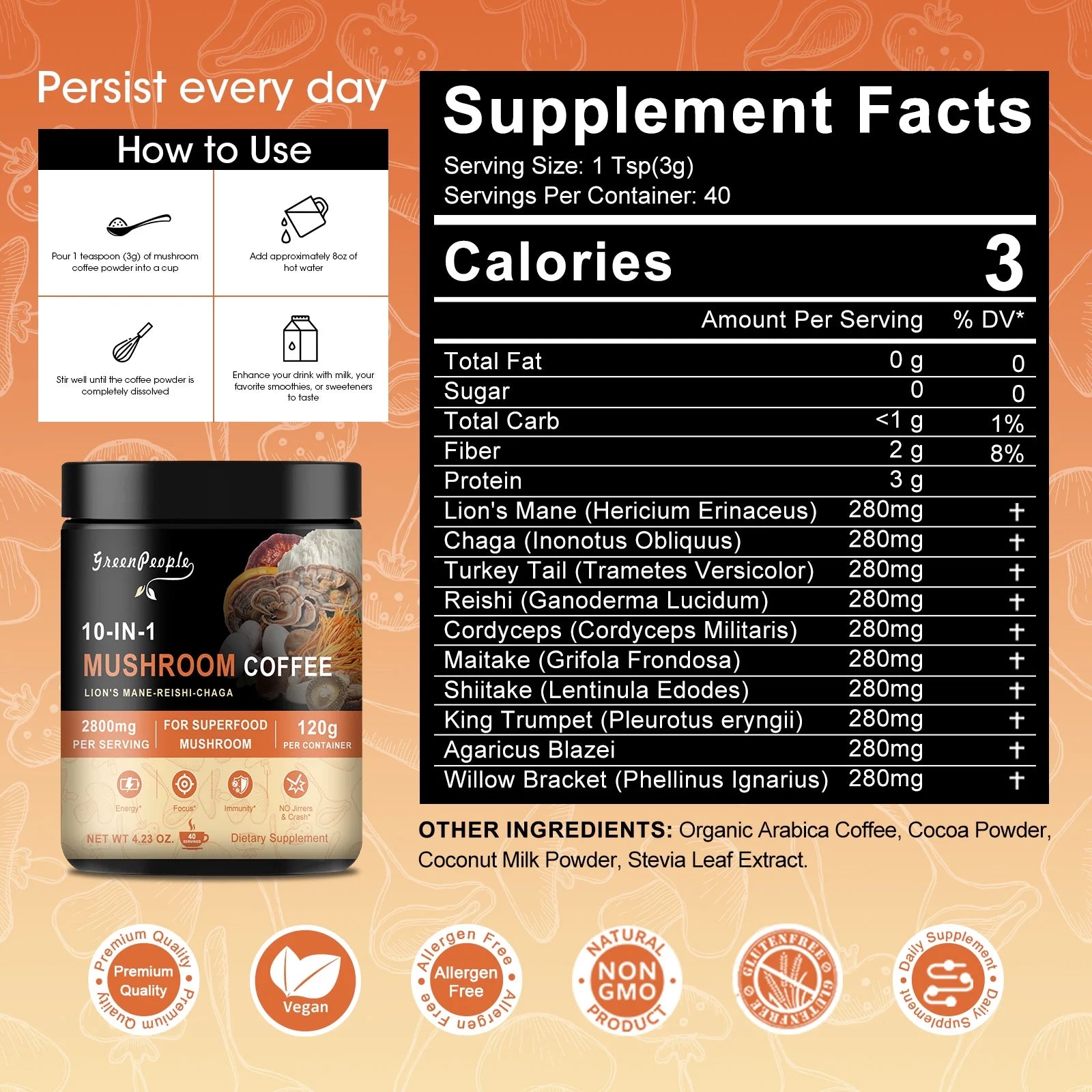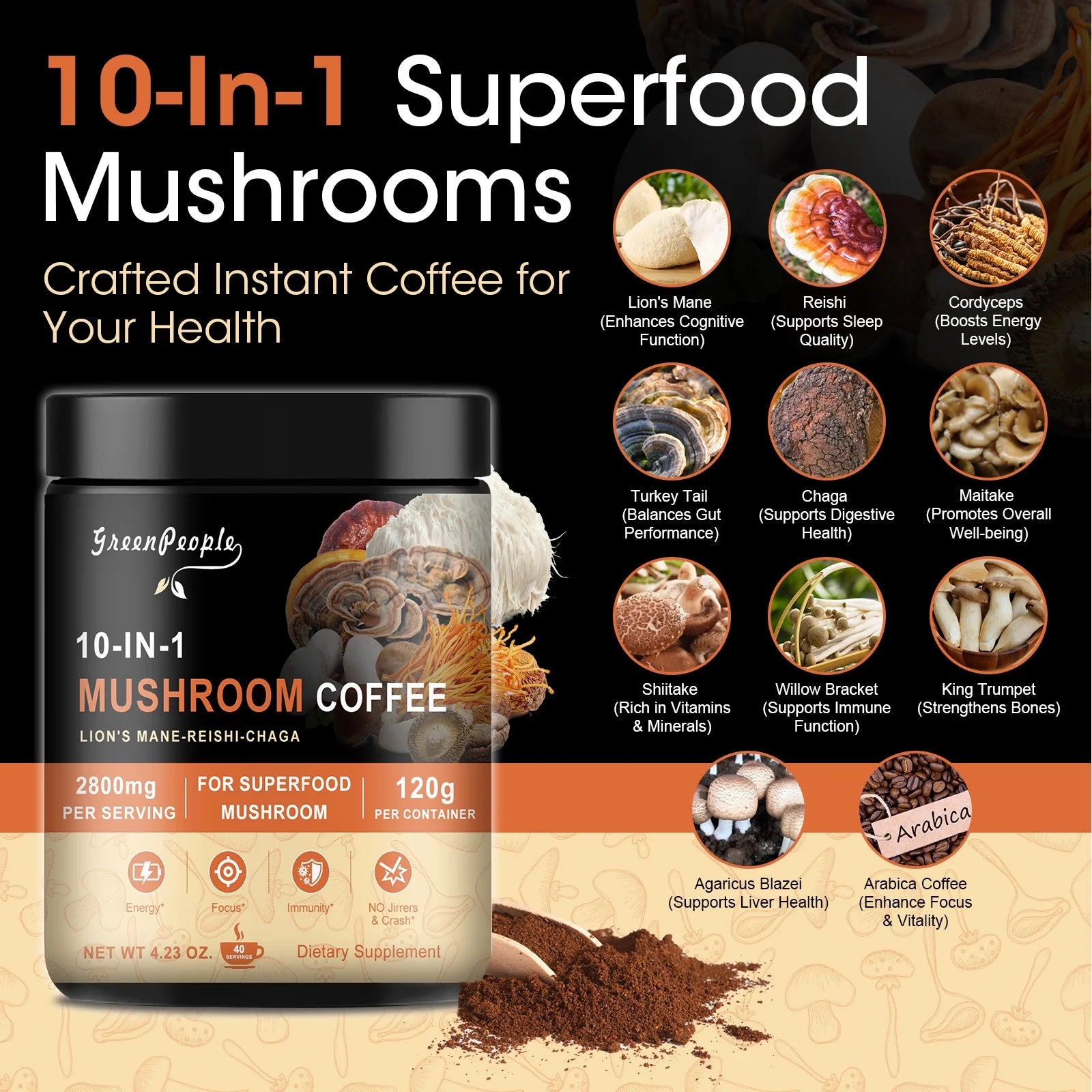 GreenPeople 10-in-1 Mushroom Instant Coffee 120g | Awaken Your Mind & Body